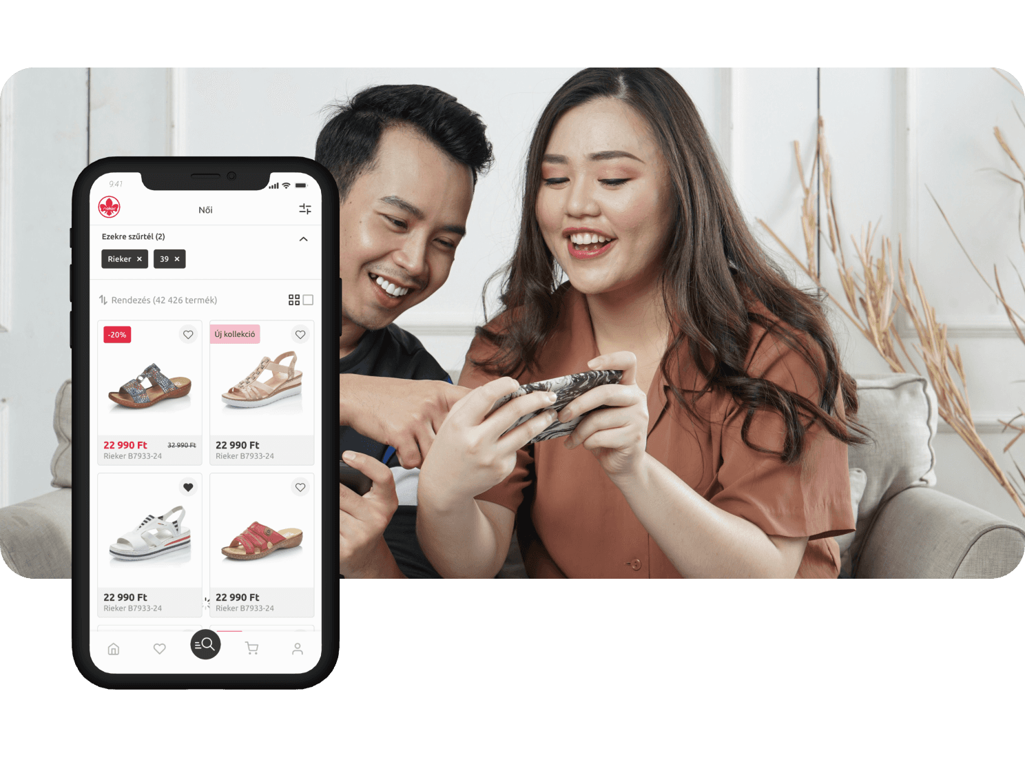 Rieker-eshop, a shoe e-commerce platform in Hungary, identified a critical need to enhance the mobile browsing experience for its customers. With 80% of internet traffic now occurring on mobile devices, it was imperative to adapt to this trend. The existing browser-based application was inadequate for mobile users, lacking optimization for smaller screens and failing to leverage the functionalities offered by iOS and Android platforms.